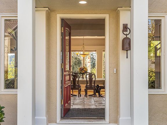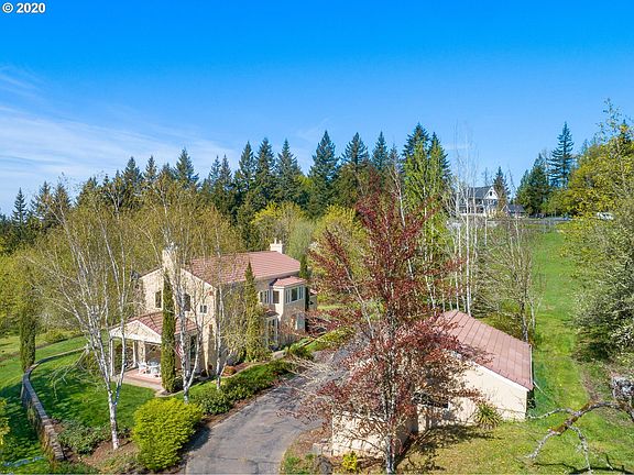 Peace, tranquility and privacy just 20 minutes from downtown Portland. Light-filled and open to the outdoors from almost every room, this custom built home, takes in the surrounding beauty in a perfect way. Floor to ceiling windows, french doors, three fireplaces, custom wood details and high ceilings. Expansive views, private half-mile walking trail and gorgeous apple, pear and plum orchards. Simply stunning in every way!