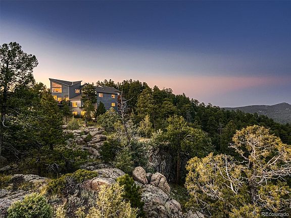 Nestled amidst the breathtaking Rocky Mountains, this meticulously crafted mountain retreat offers the ultimate blend of tranquility and luxury. Welcome to 14441 Peaceful Way, a place where nature's beauty harmoniously meets modern comfort. This spectacular home, set on a nearly 10-acre lot, boasts extraordinary features and unrivaled serenity. This residence is a true architectural gem, combining rustic elegance with contemporary design. The open floor plan and expansive windows provide panoramic views of the surrounding forested landscape with many of Colorado's 14ers and National Parks. The kitchen features a gas cooktop, great appliances, granite countertops, and custom cabinetry. It's ideal for entertaining guests amongst the stunning views outside.