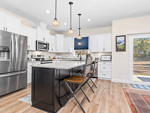 Motivated Seller! This beautifully maintained 3-bedroom, 2-bathroom home, built in 2023, offers meticulous craftsmanship and attention to detail throughout. Nestled on 5 expansive acres, the property provides privacy and tranquility, with scenic views of deer, turkey, and serene wildlife from the private backyard. Inside, you'll find 6-inch baseboards, decorative window casings surrounding Anderson-Skyline windows, and custom all-wood cabinetry with elegant granite countertops. The home also features walk-in showers, a soaking tub, spacious bedrooms—each with walk-in closets—and a generously sized laundry room. The durable 30-year vinyl siding ensures long-lasting curb appeal. Additionally, a charming, spring-fed pond located at the edge of 29th Rd and the property driveway offers the perfect spot for fishing. This home is truly a must-see!