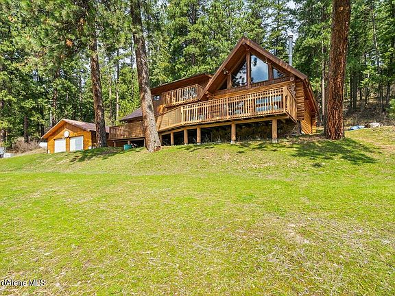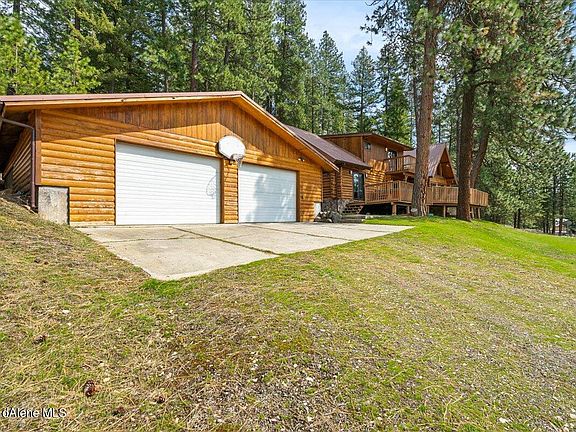 Escape to the tranquil beauty of this stunning log home cabin off the shores of Carlin Bay. This turn-key 4-bedroom, 2.5-bathroom retreat boasts a main level master bedroom, ample living space with soaring ceilings, a cozy woodstove, and panoramic views of the surrounding wilderness. All furnishings and personal property in home are included, allowing for immediate enjoyment as summer rapidly approaches. Enjoy the great outdoors from your very own hot tub or the wrap-around deck. Take a short walk to the private dock and community beach area for swimming, boating and fishing on the crystal-clear waters of Lake Coeur d'Alene. This amazing property also includes access to private airstrip just 2 miles away. With its rustic charm, and amenities this cabin is the perfect getaway for year-round enjoyment.