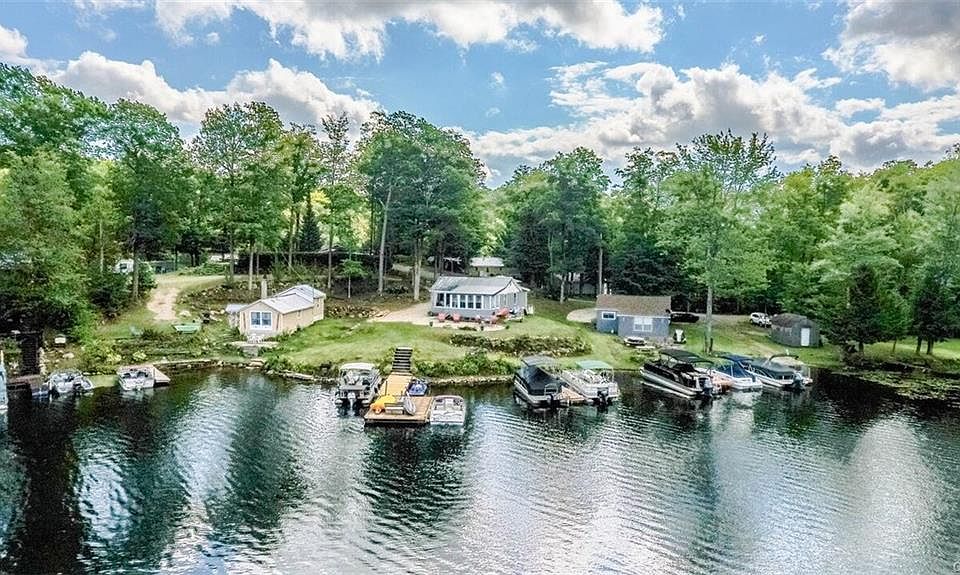 BEAUTIFUL! Nearly 100' of waterfront and lots of extra parking! Dock renters currently help with property taxes. New furnace, hot water tank, 2 docks, roof, dishwasher much more. Move in ready and enjoy your summer with friends and family. Pontoon boat may also be available for purchase. Listing agent is also an owner.