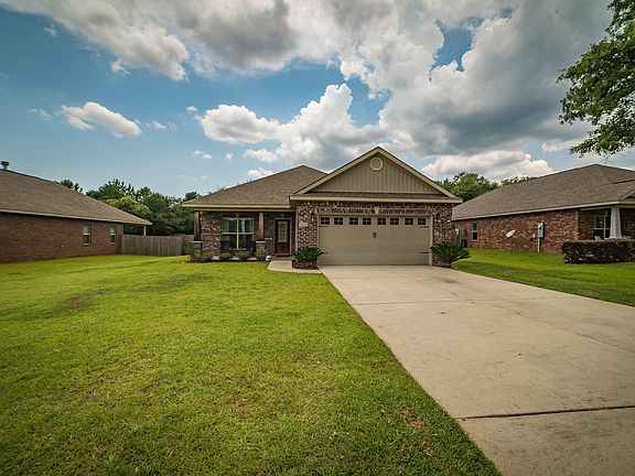 This gorgeous home was built in 2012 by Breland Homes in Hatten Farms and is ''MOVE- IN READY''. Upon entry of the home, there is a great welcoming foyer. Beyond the foyer, you will find 4 good sized bedrooms plus a ''FLEX ROOM'' that could be used as a 5th bedroom, an office, or even a play room for the children. The home has a fresh coat of paint throughout and offers real hard wood floors in the main living areas, ceramic tile in all ''wet areas'' and carpet in the bedrooms. Kitchen has beautiful cabinets with granite counter tops, stainless steel appliances, and a large island. The backyard is HUGE and goes beyond the fenced yard. All 4 side brick with a front and covered porch. Location is ideal for Air Force, Navy Seabee personnel. HOME in APPROVED USDA 100% FINANCING AREA!