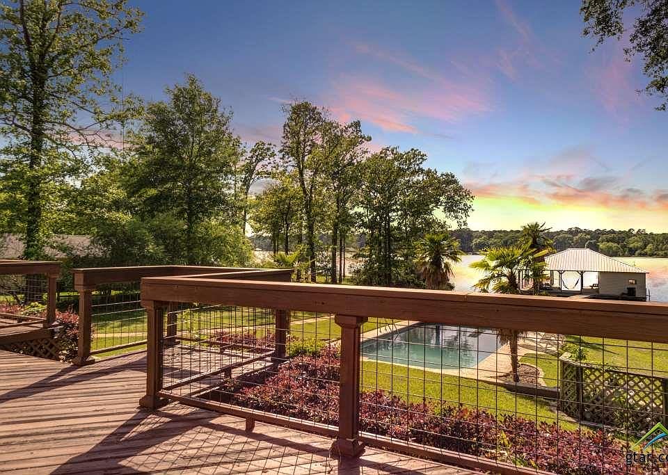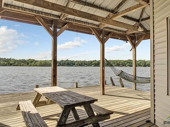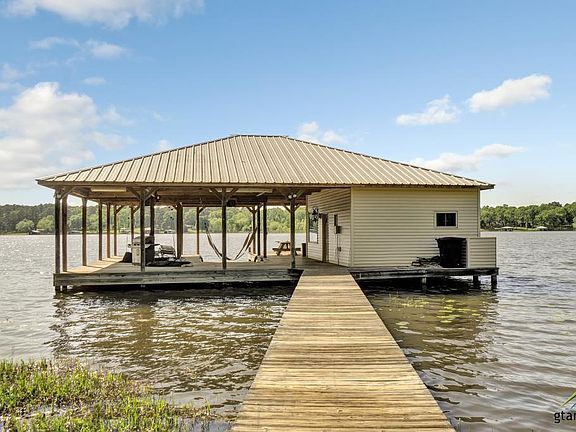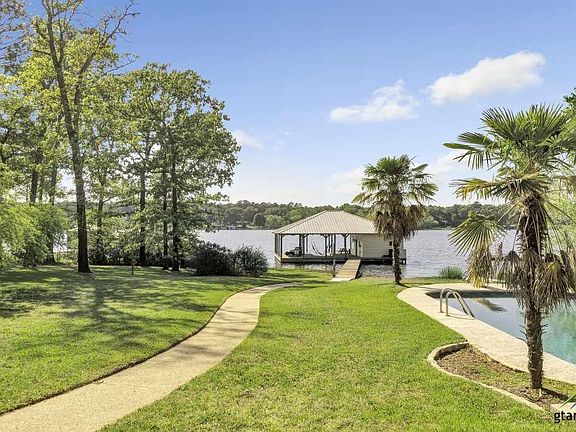 JUST IN TIME FOR SUMMER! Wonderful waterfront home freshly painted and ready for summer fun on Lake Tyler! Three bedrooms, two and one-half baths, PLUS office/playroom and two-car garage. Enjoy spectacular lake views from the family room (w/corner FP and wet bar), kitchen/dining area, master bedroom, plus additional bedroom. Kitchen features granite counters, double ovens, pantry, breakfast bar and lots of cabinets and counter space. Spacious master bath w/two sinks, jetted tub, shower and two walk-in closets. Wonderful dock with two boat slips w/electric lifts and lots of room for entertaining and sunning. Awesome boathouse, heated & cooled, living area with beautiful views of the lake, full kitchen with granite, cooktop, oven, bath, wood floors, and more! More outdoor entertaining area on spacious deck as well as around pool. Large lot with circle drive. This is a great property very convenient to Tyler! Better hurry!!
