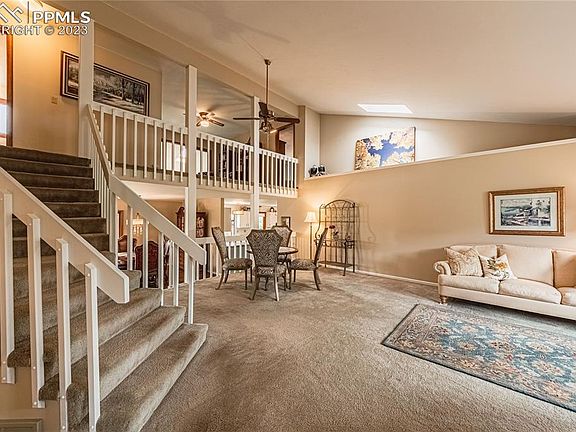 Come take a tour of this beautiful 4 bed, 4bath, 2 story, with gorgeous mountain views in a cul-de-sac with open space, using our 3D Virtual Tour! Situated in the beautiful Gleneagle neighborhood on a 1/3 of an acre and offering district 20 schools, this home and its location, are truly one of a kind! Most noteworthy, is an amazing 2-story sunroom that is filled with natural light! The 2-car garage is oversized and has a built-in workbench, and the home is near miles of groomed hiking trails and offers stunning Pikes Peak views! Inside the home you’ll find a plethora of updates. There is a new water heater, 3 new decks with a patio, newer exterior wood trim, new interior paint throughout, and custom blinds in the kitchen and family room. Two of three bedrooms upstairs have walkouts to decks and offer amazing views. There are 3 bathrooms with new marble and quartz surfaces, and 5 window seats with new marble surfaces. The Kitchen sports a new stainless-steel refrigerator and stove and dolomite marble counter tops. There are two bathrooms, on the main living area, newer luxury vinyl plank flooring in the kitchen and dining room, and newer carpeting in the family room. There are 3 bedrooms upstairs, 1 being a primary bedroom with an attached bath. Primary bedrooms have spacious walk-in closets, and the remaining bedrooms offer great size closets as well. The main level has 1 primary bedroom with an attached bath. Some extra highlights include a 220-amp wiring water spigot on the upper deck, and a raised garden bed that is newly filled with soil and ready to go! This home offers a unique interior with a fabulous sunroom, and a one-of-a-kind exterior with views, multiple decks, and open space! Don’t miss your chance to come take a look!