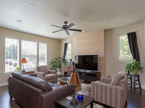 This Amazing 2000 SqFt, Tri-level home, located in the beautiful 45 Central Community, has 4 bedrooms and 2.5 bathrooms. First floor holds 1 bedroom and an oversized double car garage with opener. Second floor has beautiful wood floors and includes spacious family room, formal dining area, 1/2 bath and open island kitchen that is complete with Quartz countertops, Stainless steel refrigerator, gas stove, built-in microwave, dishwasher and pantry. Third level has washer & dryer, 3 bedrooms and 2 full baths. Primary suite with ceiling fan and large walk-in closet. Private front yard with covered porch and sprinkler system. Community clubhouse with gym and pool as well! Excellent location across the street from Villa Sport and Nike Campus. Home is pet friendly! No Smoking. Our leasing agent has all paperwork to get you started. A $65 application fee is required at time of application. A security deposit and first month's rent required for move in. Information deemed reliable but not guaranteed. ADI Properties Inc Portland Tigard Tualatin Beaverton Aloha Hillsboro Forest Grove.