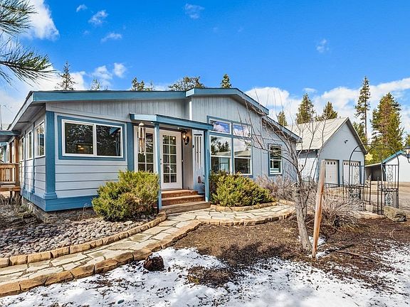 Convenient single-level living backing to BLM land! Enjoy privacy of wooded flaglot w/immediate access to hundreds of miles of trails, an outdoor enthusiast's dream. Bright interior w/spacious family room boasting fireplace. Master suite w/walk-in closet & private bath. Built-in storage throughout & versatile floor plan w/charming sun room. Ample greenhouse. Outbuildings offer plentiful storage for RV/boat/ATV, shop or hobby. Great central location in Cascade Range & Deschutes National Forest.