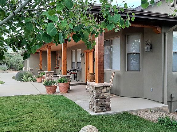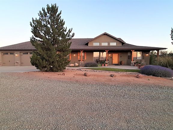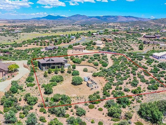 You'll love this stunning home with rustic timber charm and amazing 360 degree views from the large patios and wraparound deck, located in the prestigious Meadow Ranch in the foothills of Dewey. Come unwind & enjoy indoor/outdoor southwest lifestyle with incredible craftsmanship and quality. With 2.08 acres, your retreat has space for RV & toys, and peace and quiet you have been looking for. This home is setup for main level living; main floor boasts soaring vaulted ceilings, cozy fireplace, great room flows from the well-appointed kitchen, engaging formal dining room, GIANT pantry and separate laundry suite all with solid oak wood flooring. Office/bedroom has a private entrance and built in desk/cabinets perfect for working from home.