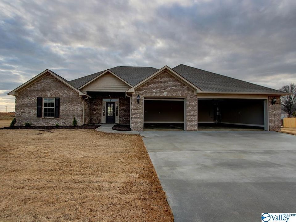 NEW open 4 bedroom, 2 bath home with 3 car garage and LARGE YARD. Kitchen w/10' ceiling, granite counter tops, large slab island with counter top seating, custom cabinetry, rev-wood floor, tile backsplash & pantry. Family Room w/10' ceiling, rev-wood floor, extensive trim, & gas-log fireplace; Master Bedroom w/double trey, ceiling fan & rev-wood. Master bath includes a large tile-bottom shower, double vanities, linen closet and a huge walk-in closet. Three additional bedrooms with ceiling fans, crown molding & rev-wood. NO carpet! Covered rear porch. Sodded lawn, septic tank. Upgrades: Large Tile bottom shower, REV-Wood through-out, and granite in baths.