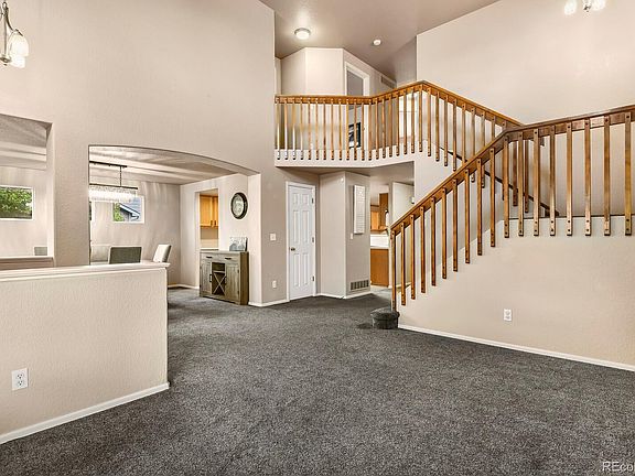 Welcome Home to your peaceful cul-de-sac living! This home immediately draws you in with VAULTED CEILINGS in the entry and living room. The living space in this home is vast with SIX BEDROOMS + Main floor office with a walk in closet. The office can be used as a 7th bedroom. Newer plush carpet throughout the home with upgraded pad. There is a Family Room, Dining Room and huge Eat-in Kitchen with tons of counter space. Upstairs has three capacious Guest Bedrooms as well as a large Primary Bedroom. The oversized Primary bedroom features a HUGE ensuite bathroom with HEATED FLOORS and enormous walk-in closet. Downstairs in the basement you will find a SECOND PRIMARY SUITE, with a large ensuite heated-floors bathroom, additional bedroom, unfinished exercise/storage room and a basement family room. Tons of storage also available in the crawl space. Backyard is over-sized at almost 1/3 of an acre, with a patio, shed, fire pit area, and garden boxes. Enjoy ridiculously low electric bills with the SELLER OWNED SOLAR PANELS, most electric bills average about $5 a month. Fall in love with the garage with the tandem 3 car. Use it as a workshop or have room for 3 cars. Location is amazing with this property, minutes from the Denver Premium Outlets, near parks, open space, and walking trails. Gorgeous mountain views in the front of the home. Easy commute downtown via I-25 and only 2 miles away from the light rail train station. Neighborhood schools such as the prestigious Stargate Charter School just a few min drive away. Two year old water heater, furnace and A/C units regularly serviced. All information provided deemed reliable but not guaranteed.