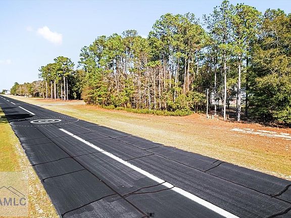 Beautiful 2,034 SQ FT home sited on 2.49 acres in gated Eagle Neck Airpark (1GA0). Just a short hop away from Savannah, St. Simons & Jacksonville. This community boasts a 3,535' x 41' paved runway with onsite self-serve fuel (100LL), community swimming pool, tennis/pickle courts & a community boat dock. This home offers on-site plane pad parking. Home features solid construction exterior with low maintenance James Hardie Board exterior on tabby pylons with daylight basement garage offering three full-size parking spots and three cart-size parking spots. Can park your boat/plane/RV on site. Storage/Workshop area in garage as well! Open floor plan for entertaining or vacationing/second home, perfect to spoil your guests around the wood-burning fireplace with wet bar. Kitchen features real wood cabinetry (not boxed imports), stainless appliances, and solid surface granite counters with hard pine floors. Three separate bedrooms, each with their own full en suite bathrooms for privacy.