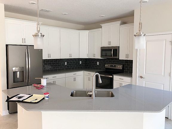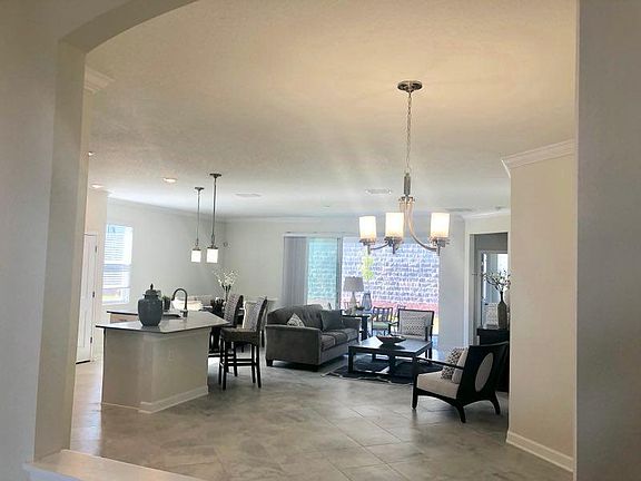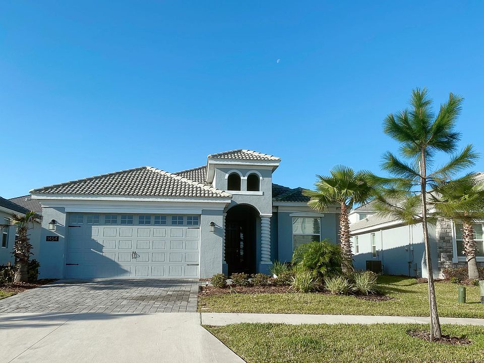 This elegant & spacious one story home includes four bedrooms and two bathrooms. The kitchen and island overlook the large combination family and dining room. The master suite includes an oversized bathroom, his and her sinks as well as a walk-in closet. Additional features include a laundry room, covered rear patio and a two-car garage. We have a limited release of NEW homes that sit on well-maintained sites with golf and conservation views, perfect for relaxing with friends and loved ones. With "Everything's Included", luxury and value go hand in hand. New highly energy efficient homes feature 42" maple cabinetry, quartz countertops in both kitchen and bathrooms, stainless steel appliances, blinds, and expansive covered lanais to enjoy your gorgeous golf and conservation views and much more! -For limited time, take advantage of our lender based incentives! Enjoy the resort style pool, spa, tennis, basketball, golf, fitness center, on site concierge, and much more. CHAMPIONS GATE RESORT ORLANDO OASIS CLUB CLUBHOUSE AND WATER-PARK: Amenities will include: Lazy River, Water-slides, Swim-Up Bar, Water Falls, Beach Entry, Spa, Splash Pad, Grill, Bar, Fitness Area, Theatre, Games Room, Tiki Bar and Cabanas. Simply relax by the pool, watch your family have the time of their life. 12 months