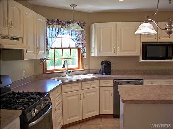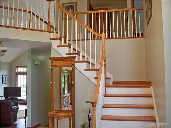16+ acres! Custom designed and built home welcomes you w/ open,sunlit floor plan, catwalk bridge on 2nd floor, rare Medina sandstone from the Erie Canal on exterior and local creekbed stone on fireplace facade. Partially finished basement features studio, cold storage room and dual access staircases. HWT (5/15)& generator transfer switch. Den w/french doors. 2-story barn w/ water, electric & fenced pasture.One heated,finished garage bay (of 3)could be modified for other uses + 2nd garage adds a 4th bay.Enjoy view of private,tree-lined perimeter of your land from huge 2-tier deck off great rm