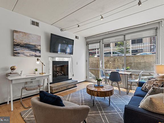 Wonderful unit #1 at Rainbow Lofts checks all the boxes: private entrance, private patio, great light, contemporary design and great location! This one-bedroom condo has super natural light from the south-facing floor-to-ceiling windows. The living room centerpiece is a gas fireplace with stone surround with a perfect spot for a home office just next to it. The front patio could be a gardener's delight; it's like an extension of the living room just opposite the wall of windows. The stylish open kitchen has quartz counters, new stainless-steel appliances, super cabinet space, and the front-loading washer/dryer set. The large bedroom has custom shelving and closets with industrial barn doors and luxurious bamboo shelving. Across the hall is a walk-in closet for coats and extra storage. The modern bathroom features a pedestal sink, sleek fixtures, and built-in shelving. The light maple wood floors were installed in 2020 and the new HVAC system is from 2022. Next to the other unit entrance is the elevator, it's an easy trip up the building's crown jewel: an expansive roof deck offering panoramic views, a grill, and multiple dining and seating areas. Pets are welcome at Rainbow Lofts and leasing is permitted with a minimum 12-month term. This great location is near an endless array of dining, shopping, and entertainment options. Enjoy the best of city living with Logan Circle, Dupont Circle and Downtown within blocks beyond your doorstep! See the floor plan in docs.
