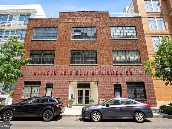 A condo unlike any other in Washington, Rainbow Lofts #43 is one of three penthouse apartments in a boutique 21-unit building situated in the heart of Logan Circle, on quiet Church Street but close to the bustle of 14th Street and P Street. The 1,250-square-foot apartment has two bedrooms and two bathrooms, 10’-9” ceilings, floor-to-ceiling windows, and a 360-square-foot walk-out private outdoor deck. Meticulously designed by the current owners—the architect for the conversion of the original 1929 auto repair garage to residential in 2004, and the former senior curator at the National Building Museum—the unit has been featured on the cover of ArchitectureDC magazine and in The Washington Post Magazine Home & Design issue. The unit’s sleekly modern interior, open living-dining-kitchen space, and immediately adjacent outdoor deck make it perfect for entertaining and convenient for daily living. The primary bedroom suite is generous, and the second bedroom is right-sized for use as an office or guest room. Floors throughout have been recently replaced, using engineered hardwood maple planks. The refrigerator, oven, and microwave are all new, and a new Bosch washer and dryer were installed in 2019. The current owners customized multiple aspects of the unit. These include three “pods” in the living area that visually organize the kitchen back wall, media center, and fireplace; a sculpture niche on axis with the entrance; stainless steel shelves in niches adjacent to the fireplace; and a built-in desk and cabinets in the office/guest room. The bed/nightstands and dresser in the primary bedroom were custom designed by the owners and made by specialty craftsmen. Aluminum leaf walls in the dining room/kitchen and hall bathroom are an homage to the terra cotta and brick walls of the loft units in the original building below. Complementing the custom aesthetic aspects of the condominium are utilitarian conveniences. The building has a centralized water system with recirculating piping, meaning that hot water is instant and endless. The HVAC pairs a heat pump for air conditioning with a gas-fired furnace for heat, both high-efficiency models. Sunshades block the summer sun while letting the light and warmth of the winter sun in. The outdoor terrace's orientation optimizes its usefulness: it is sunny all day during the winter, but in the summer, it is in shade in the early morning and late afternoon. There is a drip irrigation system for the plantings on the deck, and motorized shades for the living/dining room windows. Custom shelves, rods, and a pegboard optimize storage. Acoustic separation between adjacent condominium units is superior. The building has a large elevator, bike storage, and professional management. Penthouse unit 43 has a reserved parking space behind the building. The 1400 block of Church Street is one of the most picturesque streetscapes in Washington, DC. Some of the city’s best restaurants, bars, shops, and theaters are all within a few blocks, as well as day-to-day needs such as supermarkets, a drug store, and hardware store. Le Diplomate, Barcelona Wine Bar, Whole Foods Market, Trader Joe’s, the Studio Theater, Room & Board, Mitchell Gold, Black Cat, and Miss Pixie's are all within five minutes’ walk, with more coming soon, including Café Japonais at 14th & Church and Planta Cocina at 15th & P. Numerous bus lines and two Metro stations are nearby, as well as several Capital Bikeshare stations. Penthouse unit 43 at Rainbow Lofts offers stylish, peaceful, convenient, and comfortable living in the heart of DC’s most dynamic neighborhood.