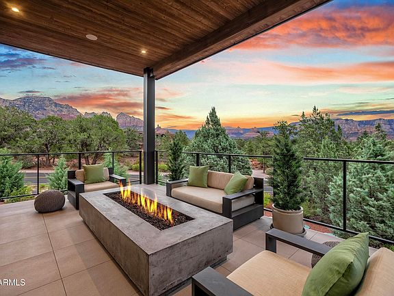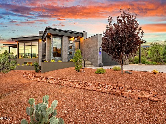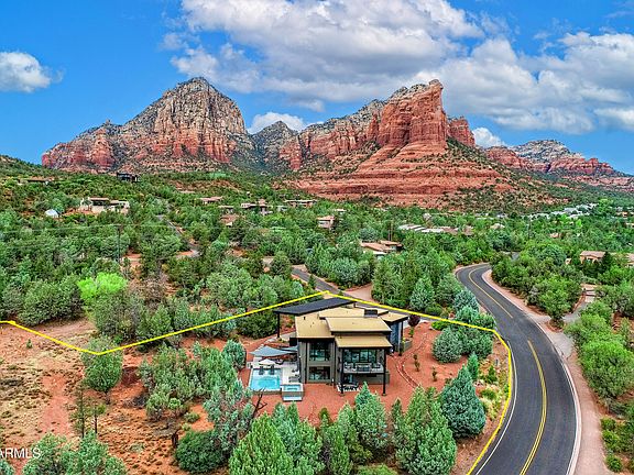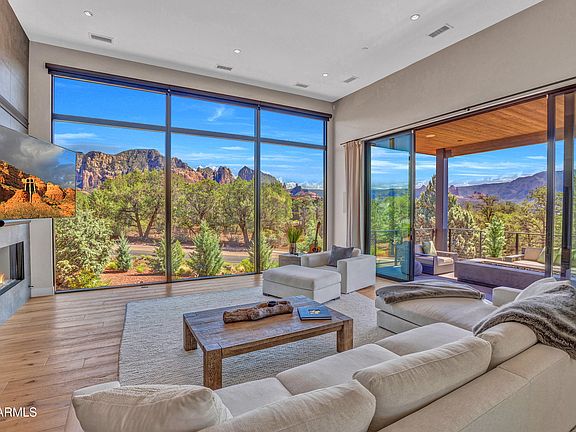 Not just a home-it's a statement. The modern & iconic Sedona smart home you've been waiting for. Panoramic in-your-face views of Mogollon Rim, Saddlerock, Snoopy Rock & beyond. All from the most exclusive neighborhood in town: SOLDIERS PASS. No HOA. No rules. Just freedom & prestige. Live luxuriously and rent it out when you're away: flexibility meets status. All of this & Sedona's finest hiking and biking trails all out your front door. Enjoy a sunset hike up to Sugarloaf Mountain or an afternoon mountain bike ride in Soldiers Wash. The best of Sedona is all at your fingertips. 5 bedrooms (5th used as a study)+ a dedicated fitness room, razor-sharp designer baths & a fully automated smart system that makes the place practically think for you. Architecture? Minimalist:Sophisticated:Sexy Every detail upgraded from the Wide-plank engineered wood floors under your feet, the high end granite and quartz counters with thickened edges and a double waterfall edge in the kitchen, the walnut grain matched cabinetry, floor to ceiling aluminum framed Low E windows, a chef's kitchen that's basically culinary armor featuring Monogram 6-burner gas cooktop + griddle and dual ovens worthy of a Michelin Kitchen. Oh, and a massive butler's pantry and two fully loaded entertainment bars with beverage fridges. And whole home smart lighting, home theater, climate and security features that make it so easy to customize every detail of your experience.