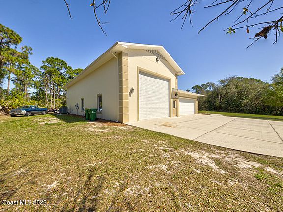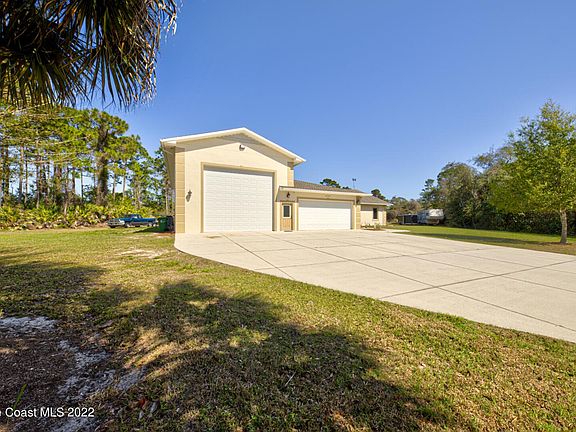 4 bed, 3-bath 3 car garage home on 1.07 acre, on a cul-de-sac built 2007 in Cocoa Rico Ranchettes. Soaring 10-foot ceilings custom wood floors. Kitchen has custom wood cabinets, breakfast bar adjacent to dining area. Master suite is oversized with ample space for large king-sized bed and your furniture, two walk-in closets; bathroom has double sinks, jetted soaker tub, sport shower. Great room, trussed patio, designed for conversion into living space. Bedroom doubles as a media room. Gigantic garage for RV and boat, a dream for collectors nearly 1800 square feet (25x67) of separately air-conditioned, over 17 feet in height, doors are 16x14, Bathroom 3 is in garage which plumbed for guest suite. New roof 2022, exterior paint in 2022, energy efficient windows by Andersen, central vacuum. First time on the market! 4 bedroom, 3-bathroom 3 car garage home on over an acre, on a cul-de-sac , custom built in 2007 in the beautiful neighborhood of Cocoa Rico Ranchettes. You enter the home through a double column portico passing through a custom fiberglass door to be greeted by soaring 10-foot ceilings and custom wood floors. Immediately to your right is bedroom number 4 which is currently being used as a media room in this split plan. To the left is the chef's kitchen featuring custom wood cabinets and has breakfast bar and adjacent to dining area. Master Bedroom suite is oversized and has ample space for large king-sized bed and all your furniture, features his and hers walk-in closets, en-suite bathroom has double sinks, jetted soaker tub and sport shower. Formal living room or great room is welcoming and spacious adjacent to large under trussed patio which has been constructed for easy conversion into living space. The third car garage is an RV or boat garage, a dream for collectors with nearly 1800 square feet (25x67) of separately air-conditioned space with over 17 feet in height and doors that are 16x14, Bathroom number three is in garage which is also plumbed for possible guest suite conversion. New roof 2022 fresh exterior paint in 2022, house has energy efficient windows by Andersen and is also, equipped with central vacuum.