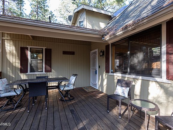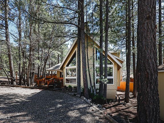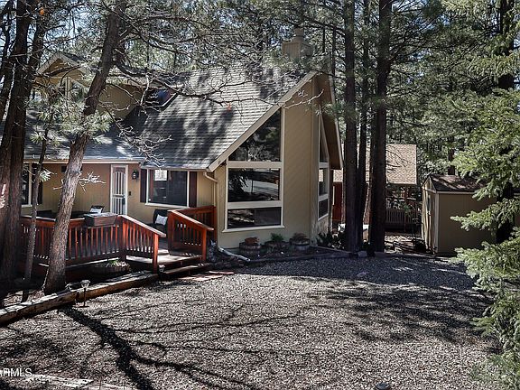 OWNER WILL CARRY! Charming Chalet Cabin, located in a prime Munds Park location. Sit back and relax on the front or back deck surrounded by Ponderosa Pines. Cabin comes mostly furnished, new carpet and ready to move in. There are 2 bedrooms, 2 baths and a spacious loft that could be an office or extra sleeping area. Enjoy the beautiful wood burning fireplace on those chilly evenings. Cabin sits on a large 7,216 sq. ft. corner lot with room for an RV or extra parking. There is a large Tuff Shed, small storage shed and fenced backyard. OWNER WILL CARRY.
