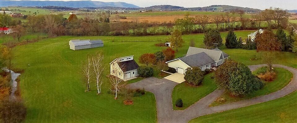 Bring the horses! Wonderful farmette home, custom built on over 6 LEVEL acres! Mountain views, Stream, POND, multiple buildings, fencing... everything on wish list! One level living home with plenty of space to SPREAD out (over 3400 sq ft!) Very OPEN floor plan with fireplace, flooded with natural light! Cozy sun room off the master suite! Newer roof, brand new Trane HVAC unit, 2 car attached garage with "man cave" off of it, AND a det. garage with a bonus room upstairs (ideal for storage or even a neat "Granny pod?") Fantastic location just a hop, skip and jump to I64/I81 interstate, schools, shopping etc. All zoned General agricultural so animal friendly! This place is calling your name!