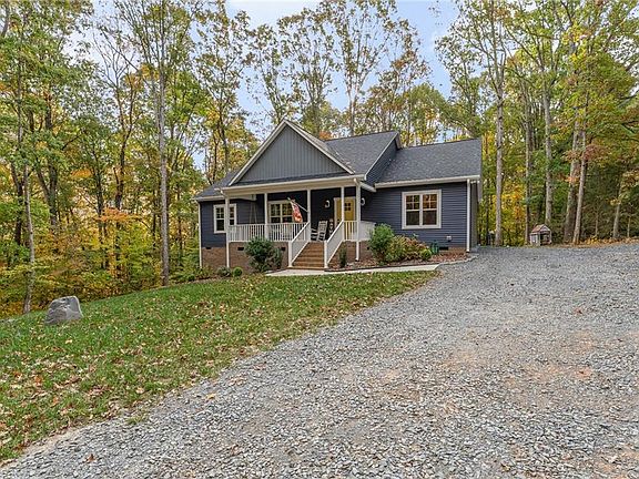 Wonderfully cared for home on 5.27 acres within minutes of town.  This better than new home features spacious rooms, living room with stacked rock fireplace, fabulous kitchen with a grand center island for entertaining, double sinks in both baths, tile shower,  soaking tub, vinyl plank flooring throughout, walk in closets and so much more.  Being nestled in the woods you will enjoy privacy, wildlife and quiet evenings relaxing by the firepit or rocking on the front porch.  There is even a small pond that could be used for watering a few farm animals. Storage buildings and great parking are a few of the extra features. Must see.
