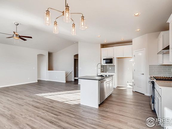 Under Construction with an estimated completion in April - The Telluride is a spacious ranch plan that boasts 3 bedrooms, 2 bathrooms and a massive three car garage. The open concept kitchen and living room are thoughtfully upgraded with hard surface flooring and a vaulted ceiling. White cabinets, a gourmet inspired kitchen layout and quartz countertops make the kitchen a real showstopper. The master bedroom features a private en suite with a custom tiled walk-in shower. Out back you will find a 14'x14' covered patio to enjoy the beautiful Colorado weather. Other inclusions are a full unfinished basement, front yard landscaping, AC and modern black fixtures throughout!