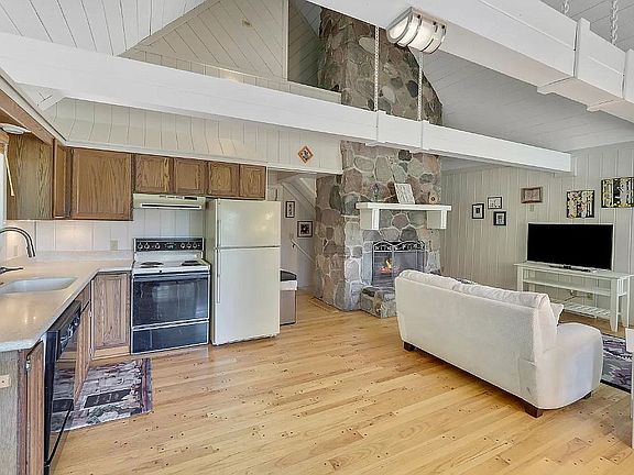 Acreage and privacy on a great fishing lake are yours in this year-round cottage on Lake Marion, just outside of the charming town of Charlevoix. Enjoy 249 feet of frontage on a private lake with no public access. Vaulted ceilings grace the open concept living, kitchen and dining areas, which open onto the large Trek deck with spectacular westerly views. The 4 bedrooms and 2 baths will accommodate many guests. Lake Marion is the perfect place to fish, kayak, or tool around on the pontoon boat. This spring fed lake is over 52' in depth and known for fantastic fishing. Majestic stone fireplace in the living area for cozy fall and winter evenings, master suite with second fireplace on the walkout level. All this just a 15 minute drive from downtown Charlevoix.