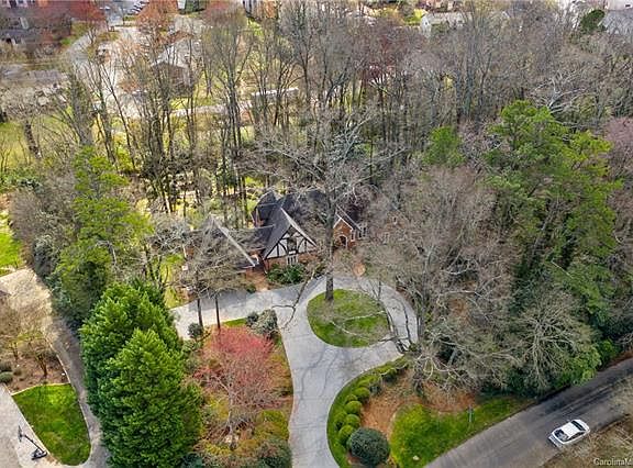 Truly one of the most enchanting and magical properties you will find in the Charlotte area. Style of the home is a modified French Norman style with Tudor influences. This amazing 1.5 acre property mirrors the feel of being in the NC mountains with towering trees, gorgeous plantings and full of color changes throughout the seasons. This spectacular home was custom designed and built in 1997 by a renowned Charlotte architect and antique dealer who collected the home's precious antique treasures that are scattered throughout the home from all over the United States and abroad. 1445 Meadowood could be renovated with current layout or certainly there are endless possibilities to recreate the second floor with bedrooms and bathrooms and utilize the unfinished square footage. The first-floor living/dining space does not get any grander! The main level balcony will certainly become your favorite space for morning coffee or afternoon wine with the breathtaking and private view.