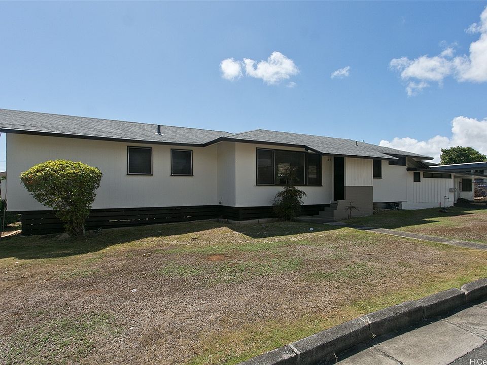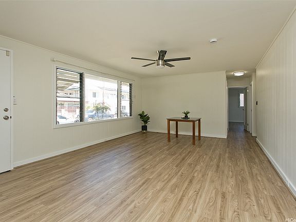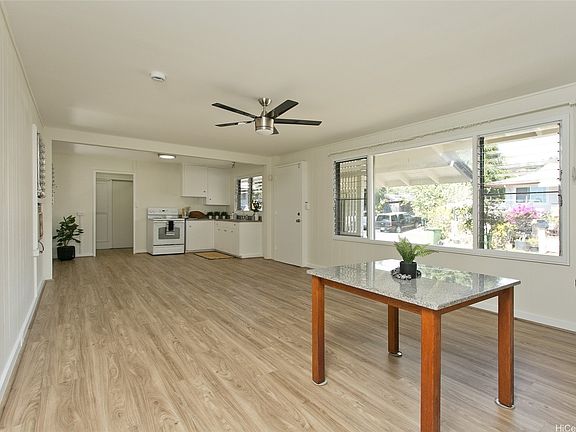 Discover this charming single-level, 3-bedroom, 1.5-bath home, nestled on a quiet, dead-end street. Freshly upgraded with new paint and flooring throughout, this residence offers a bright and inviting atmosphere. A spacious, usable covered lanai leads out to a sizeable yard, perfect for entertaining. Imagine days with friends and family, out back with your favorite dish on the bar-b-q. Located near town, but just far enough away to feel like you have your own slice of privacy. A canal in the back separates you from your rear neighbor so the house feels very private. Includes 1 covered parking space under carport, but there is much street parking and a second stall could be arranged. Large, storage area off the carport is useful for those who have a hobby, or need extra space. There's also an extra toilet in the lanai space. Open Sunday (10/12) 2 - 5p.m.