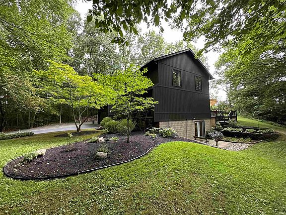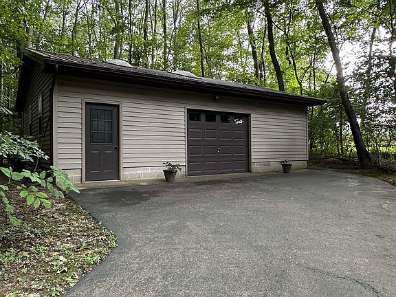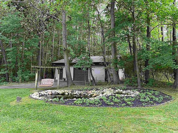 Nestled on 2.43 acres of serene, wooded land, this exquisite two-story home offers the perfect blend of privacy and luxury. A beautifully landscaped yard welcomes you to this meticulously maintained property, featuring a decorative water fountain with a charming swing. The main house boasts an attached two-car garage and is complemented by a detached, heated 24x32 garage with an expansive workshop. Enjoy the outdoors from two spacious decks or the enclosed all-seasons sunroom, perfect for year-round relaxation. Inside, the living and family rooms showcase stunning hardwood floors. The family room also features a cozy wood-burning fireplace, seamlessly flowing into the kitchen. The kitchen is a chef's dream, with ample countertop space, striking granite countertops, abundant cabinetry, and a pantry. This home includes three generously sized bedrooms and 2.5 bathrooms. The main bedroom is a luxurious retreat, featuring an ensuite bathroom with a walk-in tiled shower, a vanity with ample countertop space and storage, and an additional sitting room. Bedrooms two and three offer large closets and expansive windows, allowing for plenty of natural light. The finished walkout basement is an entertainer's paradise, complete with a professionally detailed built-in bar, pool table, and additional living space. This home exemplifies comfort, style, and meticulous upkeep, making it a true sanctuary in a beautiful, secluded setting.