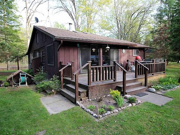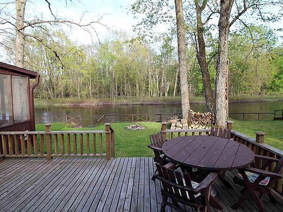 Log cabin with 110 Feet of frontage on the Muskegon River. This 2 bedroom cabin features a large master bedroom with view of the river from both bedroom windows, extra space in loft over kitchen, screened in room facing the river, decks off front and back of cabin, newer roof and skylights, and wood burning stove. Property also features a stick built 30x40 1 1/2 story garage with workshop.