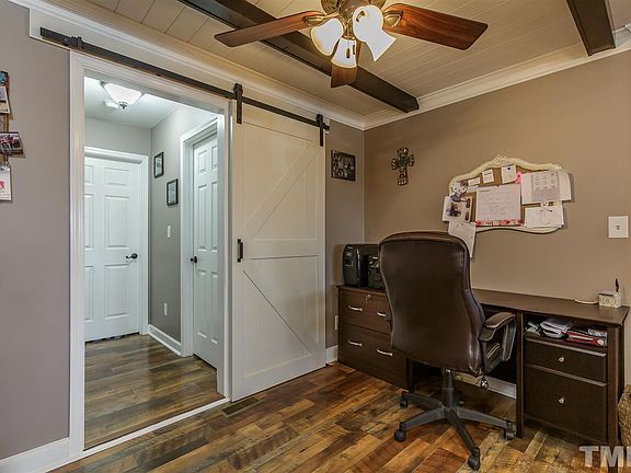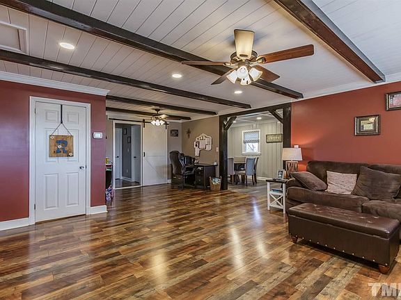 Meticulous detail in beautifully remodeled ranch on 1.63 Ac. Gorgeous vinyl plank and ceramic tile flooring, ceiling fans, office offset, beamed ceiling in living room and coffered ceilings in kitchen and dining area. Custom cabinets and countertop in kitchen & mudroom/laundry with custom cabinets and built-in storage. Beautiful moldings throughout. Huge MBR has WIC & access to deck.Tile shower & granite ctrtop on large vanity in MBA. Large covered front porch, detached workshop & addt'l storage bldg.
