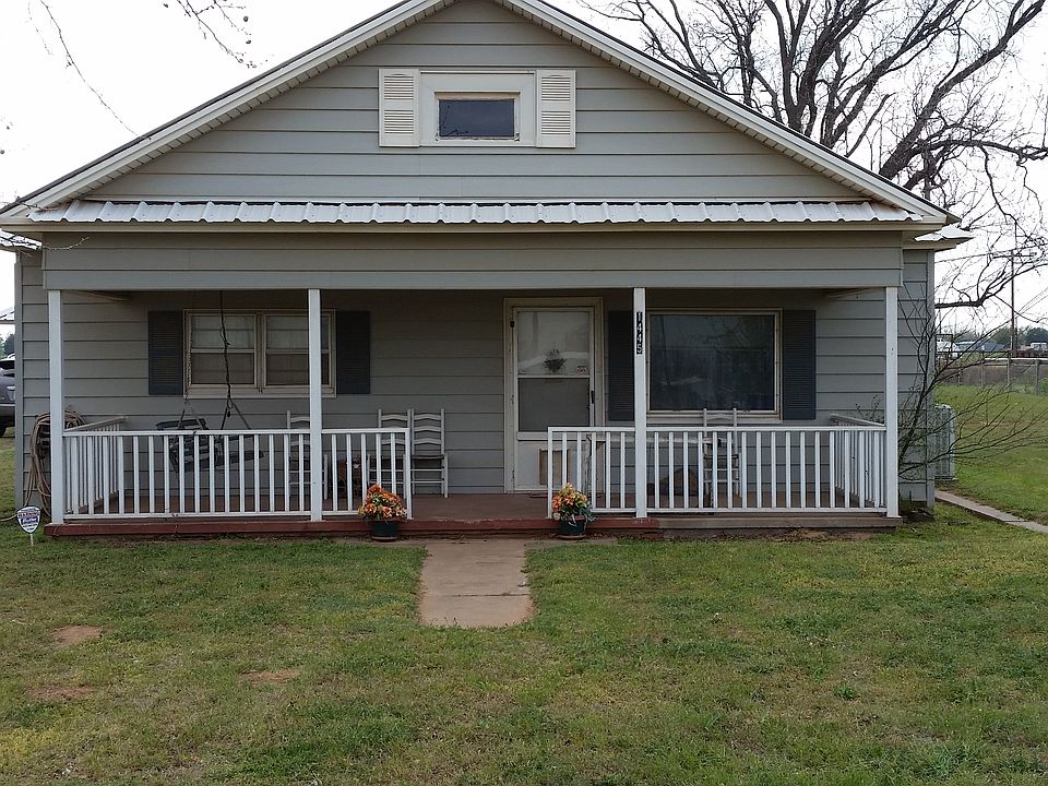 3 Bedroom, 2 Bath home just out of the city limits on +/- 2.76 acres. Large kitchen with lots of cabinets, spacious laundry room with even more storage. Laminate wood floors throughout the home with ceiling fans and tall ceilings. Exterior amenities include a large front porch, metal roof, 1 car garage with storage area and a storm cellar. Behind the house is a large insulated shop with concrete floor and a roll up door, lighted roping arena, and a hay barn with tack room.