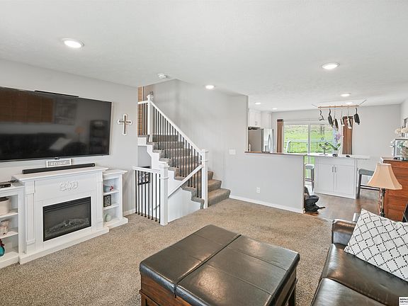 This 3-bedroom, 2-bath residence features a 2-car garage with a built-in workbench, fireplace, and TV setup. Its facade showcases stone detailing, adding visual interest. The finished basement includes a space-saving Murphy bed for visitors and an egress window for safety. Situated on a corner lot, the property is landscaped and comes complete with a storage shed, garden beds, and a children's playground. AMA