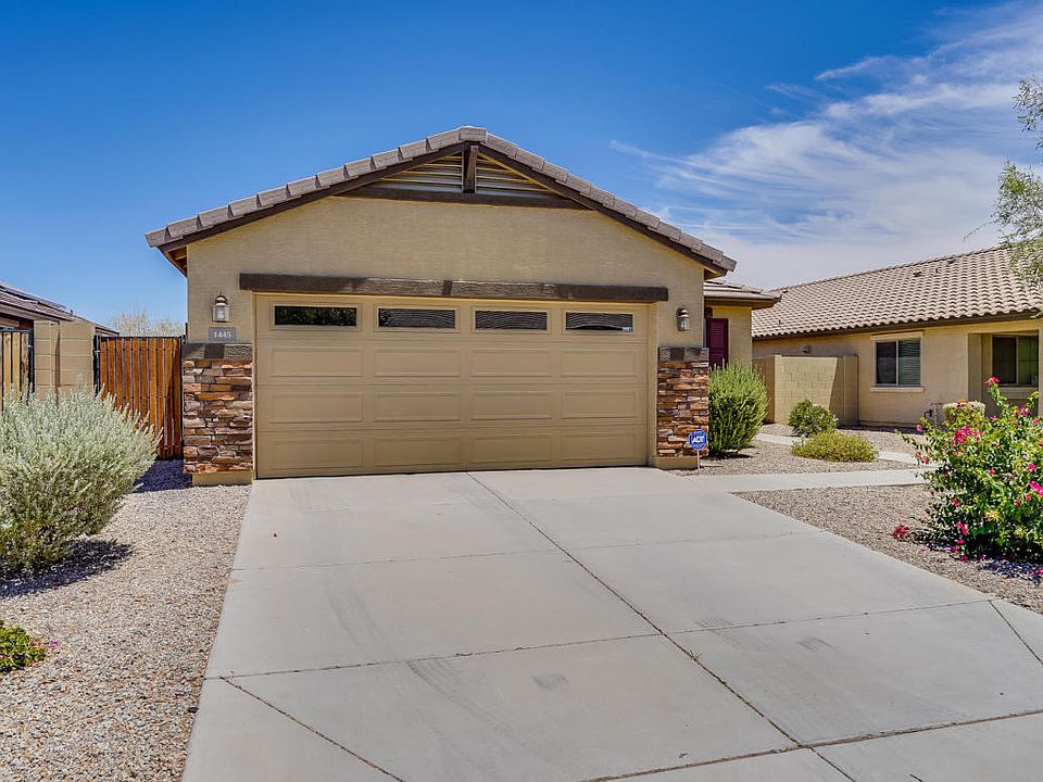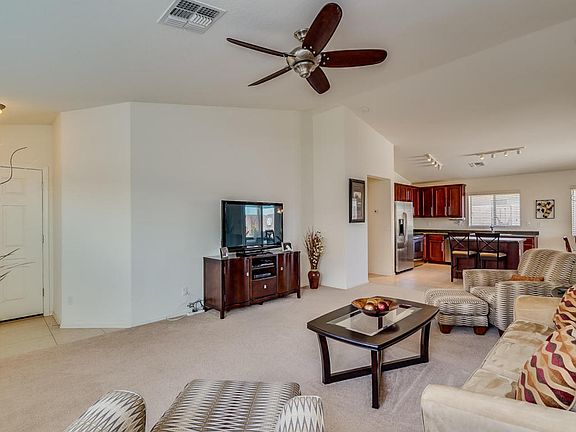 ~~One of a kind~~ Absolutely beautiful 4 bedroom, 2 bathroom home located in the popular Watson Estates. This home has vaulted ceilings, tile in all the right places, upgraded cabinets, nice island, stainless steel appliances including refrigerator, washer and dryer, great room floor plan, split master bedroom, eat in kitchen. Resort style backyard with sparkling blue pool, heated and cooled pool, cool decking, extra patio area for entertainment, matured landscaping, beautiful setting, and home backs to desert. Truly a must see home!