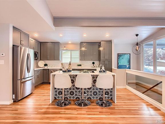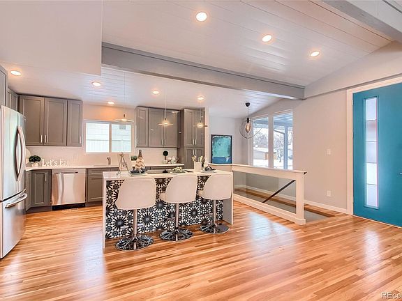 Beautifully remodeled Mid Century Modern, with a twist, including a fully finished basement in Krisana Park/Virginia Village! This 4 bedroom, 3 bathroom home features a large open floor plan, vaulted ceilings, sprawling hardwood floors and high-end finishes. Upon entering home you'll find the bright and open kitchen with quartz countertops, stainless steel appliances & a large island. Abundant natural lighting in the living room with backyard access and dining room. Master suite boasts walk-in closet and en suite 3/4 bathroom with double vanities and oversized shower with double heads. Full bathroom is perfect for guest use. Don't miss the main floor 2nd bedroom with vaulted ceilings, ample windows and large sliding pocket door. This bedroom could be used as your office or additional living space. Finished basement features a spacious family room with the 3rd and 4th bedrooms, 3/4 bathroom and laundry room. Fenced in backyard with sprinklers and off street driveway parking. New windows throughout, new exterior siding, new plumbing throughout, 90% new electrical, new hot water heater and more! Amazing location in the desirable the Krisana Park neighborhood with easy access to shopping, restaurants, Cherry Creek, DU, Denver Tech Center, light rail and 1-25. Don't want to miss this incredible home that is ready for you to move in!
