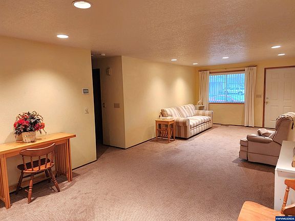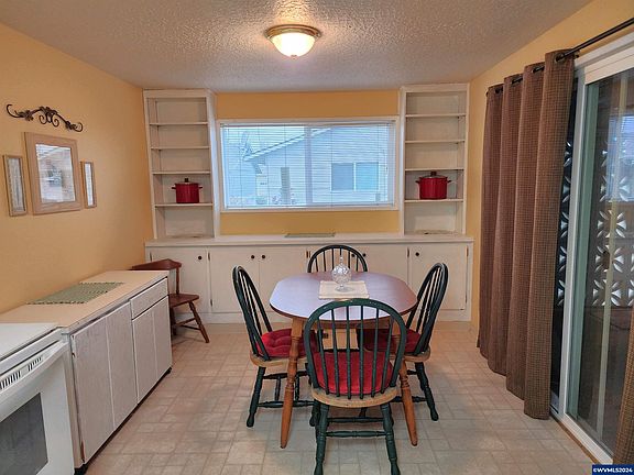 Woodburn Senior Estates, 55+ community, 2 bed, 1 and a half bath. Primary has WIC, Walk-in Shower, Large living room, covered and enclosed back patio, mostly fenced back yard. New furnace and thermostat in 2021, new hot water heater, New Appliances, A must-see!! Annual fee 1,008 including Golf. One-time transfer fee of 1.5% of the purchase price.