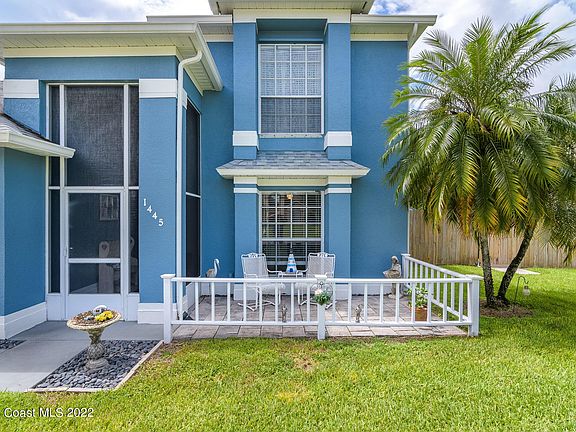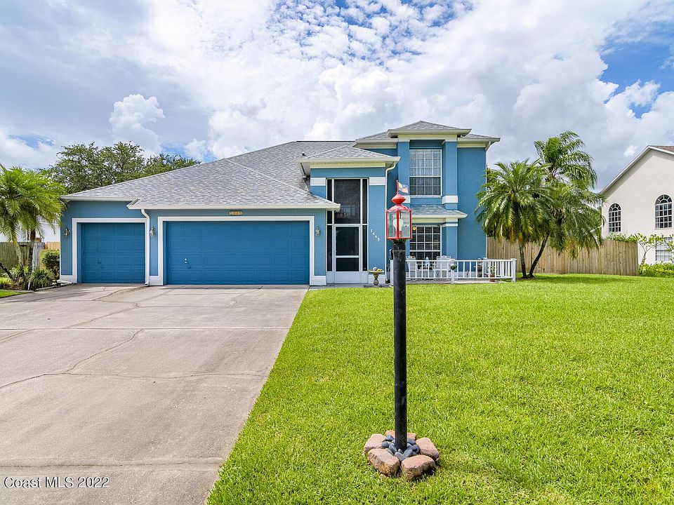 Finally a great neighborhood w/low HOA! Timeless 2-Story home graciously settled on .49 acres. Nicely laid out w/ 4bdrms/2.5 baths/3car garage, a sparkling inground pool & a dock on the navigable lake for your little kayak to entertain the kids! A cheerful kitchen w/breakfast nook showcases SS appliances & offers access to the formal dining room. Laminate floors cover the upstairs where 2bdrms, bath & a loft w/sitting area share the space. Easy maintenance w/ tile throughout, roof replaced in 2015 & AC in 2021. The downstairs master suite offers a walk-in closet, a bath with access to the pool & french doors to your own porch. High ceilings great room w/ sliders to the covered porch overlooking the pool & the natural setting! Easy drive to I-95, A Schools, Viera Eateries & specialty shops!