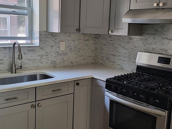 Renovated 2 bedroom with 2 full baths both bedrooms are queen size sliding door closets in both rooms bedroom has solid wood floors kitchen/ living area kitchen tile kitchen has stone countertops solid wood cabinets glass backsplash has dishwasher all new windows insulted and tilt in for cleaning a/c sleeves in walls so no need to use windows small outdoor patio space can Q out on you pay for your utilities which is low cost pets allowed small with pet deposit . apt is located on first floor 7 steps up. transportation is 3 blocks away buses and train good shopping area on 65th street' please contact John Martino owner pays for cold water and sewer.