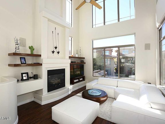 Location! Location! Location! Light, Bright Contemporary townhome with soaring ceilings and lots of glass to bring the outdoors in and fill the home with natural sunlight. Split bedrooms allow for privacy when having guests. Both the primary and secondary bedrooms have walk-in closets. Open loft space adds to the spacious feeling of the home. Kitchen features Ceasarstone white quartz counters and stainless appliances. The gas fireplace adds to the ambience. Relax and enjoy the view from the balcony overlooking the resort style community pool and spa. Enter the home directly from the one car garage. Gated community close to Horizon Park, McDowell Mountain Aquatic Center, golf, AJ's, Flo's, Shopping, Libraries and all that Scottsdale and the Phoenix Metro Area have to offer. Show & Sell!