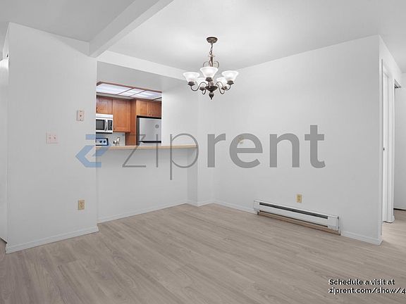 Welcome to your new home at 14450 Northeast 31st Street, Bellevue, WA 98007. This charming apartment offers a blend of comfort and modern style. As you step inside, you are greeted by an open-concept living area with sleek laminate flooring and ample natural light streaming through large windows. The kitchen is a chef's delight, featuring stainless steel appliances, elegant cabinetry, and a convenient breakfast bar, perfect for casual dining or entertaining guests. Adjacent to the kitchen, the dining area is highlighted by a stylish chandelier, creating a warm and inviting atmosphere.