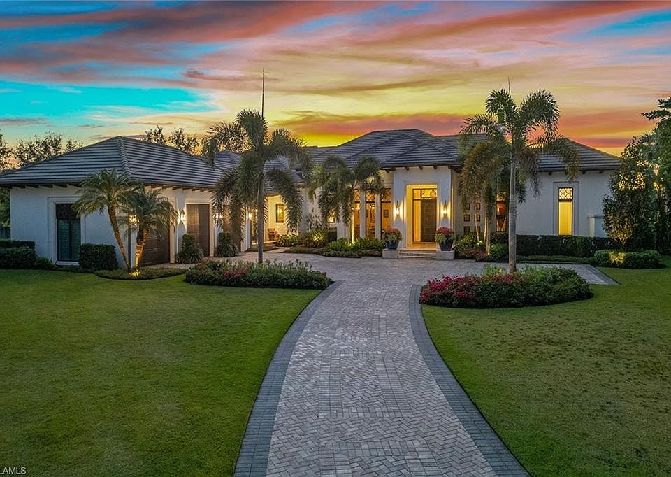 Discover luxury living in this truly exceptional home with timeless appeal nestled in the prestigious Marsala community of Tiburon/Ritz-Carlton Golf Resort in Naples and enjoy IMMEDIATE full golf membership. This exquisite residence, designed by award-winning Stofft-Cooney architects and meticulously constructed by CK Custom Homes, offers an unparalleled blend of elegance and comfort, perfect for those seeking a sophisticated lifestyle. As you step inside, you’ll be greeted by a grand foyer with Venetian Plaster barrel ceiling, adjacent dining room with custom vaulted Venetian Plaster ceiling detail leading to an expansive open-concept living area with large, disappearing sliding doors that flood the space with natural light and frame the spectacular Florida sunsets from this west facing property. The kitchen is an entertainer’s dream with Cristallo and quartz countertops, Wolf and SubZero appliances, two dishwashers and beautiful views of the golf course and lake. The primary suite is a private oasis, with custom ceiling features and a lavish spa bathroom. All four bedrooms are en-suite along with a spacious den, all on one-level living with 15-foot ceilings and situated on a one-of-a-kind golf course lot. This large and private parcel is located on the 9th hole of the Greg Norman designed Tiburon Black course with expansive views of the lake and golf course and a generous side yard with bocce court/chipping area. The meticulously landscaped backyard is a true retreat, boasting a large pool deck and oversized pool and integrated spa with glass tile finish. Electric screens and hurricane shutters protect the entire generously sized covered lanai living, dining and kitchen. This outdoor space is sure to impress. The natural gas generator powers the entire house. Located in popular North Naples, this home is just minutes away from pristine beaches, upscale shopping and dining at Mercato and Waterside Shops. Experience the best of Florida living in this stunning Tiburon home. Don't miss the opportunity to make this dream property your own!