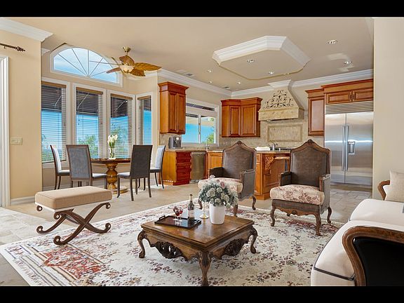 Drive past gorgeous landscaping through the gates at the prestigious Ridge Ranch Estates and ascend to this exquisite manor home sited privately near the top of the community on the West edge of Valley Center. Remarkable views galore at this stunning French Chateau style Valley Center estate. The wrought iron gates to the property open to impressive landscaping, stamped concrete entry and leaded glass double entry doors which suggest the quality inside. No expense was spared in updating the interior of the home which boasts custom cabinetry, top of the line appliances and travertine throughout. Top of the line finishes throughout the entire house. Home features wrap around deck to from which you can enjoy million dollar views while. The home also features a 1/1 granny flat of over 850 sqft not included in the square footage or bed/bath count.