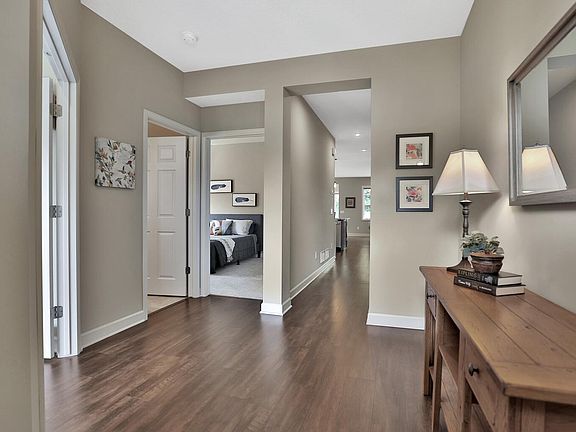 Rare opportunity to get a move in ready and barely lived in "Cedarwood II" model. this is the builder(Hans Hagen-M/I Homes) most popular style home, and it comes with all the upgrades! Home is like brand new condition as previous seller only lived in home 3 months each year and only a wedding makes this home available now! Home boasts amazing open concept floor plan with sun room, patio and nice sized backyard. Kitchen features huge island, granite tops, upgraded SS appliances, built in hutch, and upgraded cabinetry. Garage is also fully finished and has a large upstairs storage area. Community has so many things to offer and great convenient location to highways and Mississippi River parks and trails.