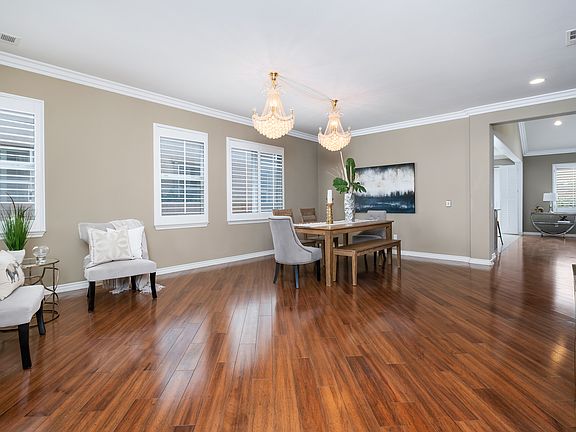 From the moment you arrive, you will absolutely love this beautifully upgraded Lennar-built home situated in the Bridlecrest at Meadowside community of Eastvale. A custom landscaped front yard welcomes you home. The kitchen has been tastefully updated with granite countertops, stainless steel appliances, and a touchless faucet. Further upgrades include recessed lighting, crown molding, hardwood and travertine flooring, and crystal chandeliers. A jetted jacuzzi tub in the master bath is perfect for relaxation. All bedrooms are on the first floor; the upstairs is a bonus room/loft. Get ready for plenty of parties and barbecues for years to come in the custom built gazebo. Parking is never an issue with the attached, three car garage and driveway. Ideal location close to schools, parks, and the 15, 71, and 91 freeways. Hurry! Homes in this excellent area do not last!