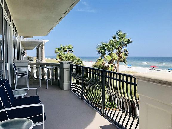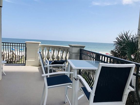 RARE OPPORTUNITY. 3 bedroom/ 3 bath , Beach-Front condo, corner unit in the beautiful, rent-restricted Palms of Perdido. Fully Furnished, Move-in ready. Coded elevator entry to the reserved hallway entrance. Expansive Great Room with floor to ceiling windows, and 11 Foot ceilings! Wraparound balcony to enjoy unobstructed panoramic views of the Gulf. Granite kitchen countertops. Whirlpool appliances, GE Profile Wine Fridge. Flooring is tile and hardwood throughout . HVAC system replaced with high-end smart Carrier Infinity 2017; High-impact rated gulf-front windows, no need for hurricane shutters. Separate laundry room and large storage room for beach toys inside unit. Superior amenities. Fitness center, Steam Room / Sauna, Lounge with fireplace, pool table, bistro seating, full service kitchen, and owners' lockers are all just steps from your unit. THREE pools ( 1 heated ), with gated access to private beach walkover. Only 23 units, so uncrowded beach and ample parking. Beach-chair service is paid and included until the end of season in October. Buyer to verify all information including sqft.