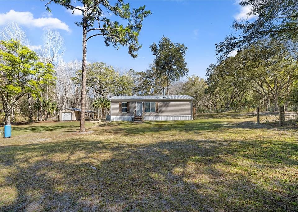 This 2-bedroom, 2-bathroom manufactured home offers the perfect blend of comfort and tranquility. Nestled on 1.53± acres within a private subdivision, this property boasts frontage and access to a sprawling prairie, providing unparalleled privacy and breathtaking views. This home is complemented by an abundance of exterior updates, including a newer well (2020), septic system (2020), underground utilities (2020), rear porch (2021), partial no-climb fencing (2022), and a durable metal roof (2023). With these modern updates enhancing both functionality and aesthetics, you can enjoy worry-free living in this idyllic setting. Step inside to discover a well-maintained interior with numerous updates, including newer laminate flooring, upgraded sinks and faucets, upgraded ceiling fans, and brick accents in both bathrooms. Ideally located near the heart of the Ocala National Forest, there are activities for everyone, including ATV/UTV riding trails, horseback riding, exceptional hunting and fishing, and water-sport activities. This area is home to several of Florida's most famous springs, lakes, and rivers, including but not limited to Salt Springs, Silver Glen Springs, the Ocklawaha River, the St. Johns River, and Lake Kerr. Don't miss out on the opportunity to make this your dream home!