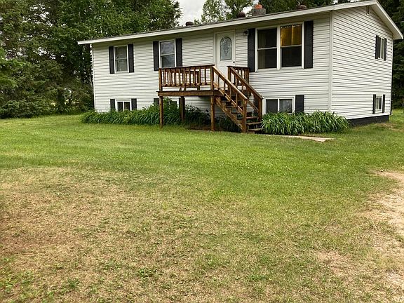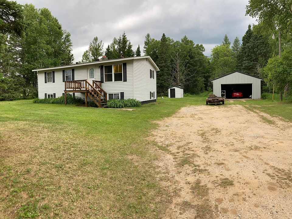 Great home with 24x50 garage on 5 acres completely move in ready! The home is 3 bed, 1.5 bath with some great updates! Kitchen updated in 2016 and 1 room has been made into an office but could still be used for a bedroom. There's a wood stove for heat and also fuel oil heat. The basement has shelving throughout and has two rooms framed used for storage and a sewing room. There's a great 17x20 addition that could make an awesome den room. The garage is perfect for all your toys as this is right down the road from the trails! All winter long you can enjoy the 11x7 sauna as well! Work that has been done on the home: