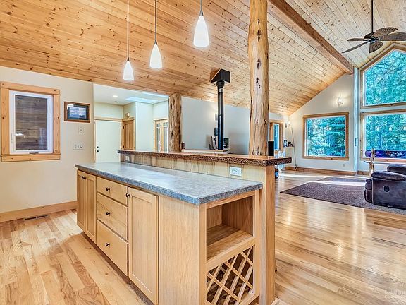 This is the home you have been waiting for! Tucked away in the desirable neighborhood of Crossroads, this lodge style home welcomes you with a large open floor plan, wood vaulted ceilings in the main room, cozy wood fireplace and hardwood floors. There are two bedrooms on the main and a spacious master bedroom upstairs with an office, walk-in-closet, and radiant heating in the floor of the master bathroom. This home also has a single car garage and a two car extended garage with shop area. So many possibilities with this large corner lot!