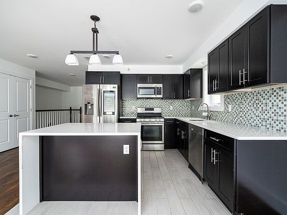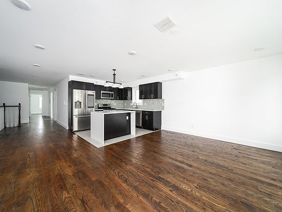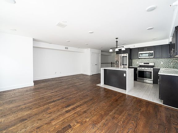 No Broker Fee. This stunning, newly constructed unit, built in 2021, truly has it all. Boasting 3 spacious bedrooms and 2 baths, it features an expansive open layout with soaring 9-foot ceilings and elegant hardwood floors throughout. The recessed lighting adds a modern touch, while the gourmet kitchen showcases stainless steel appliances, a stylish tile backsplash, quartz countertops, and a striking waterfall-edge island. Bathed in natural light, this apartment offers a warm and inviting atmosphere. The primary bedroom is a serene retreat, complete with a walk-in closet and an en-suite bathroom featuring a large jetted tub for ultimate relaxation. Additional conveniences include an in-unit washer and dryer, central air conditioning, and a dedicated parking space for one car. Situated in a prime location with easy access to NYC and major highways, commuting is a breeze. Landlord to pay Broker Fee.