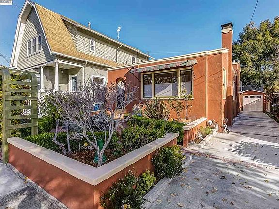 Enjoy this beautiful Mediterranean style split level bungalow located in a charming West End neighborhood featuring a lovely landscaped front yard with a brick walkway, mature plants and newly painted exterior. Two bedrooms upstairs with a plus room and separate laundry room on the lower level which leads out to a beautiful garden, brick patio and small deck with mature trees for privacy. A workshop area is attached to the detached one car garage. The interior boasts beautiful hardwood floors, original stone fireplace, walls freshly painted with an updated, tastefully remodeled kitchen and bathroom. Ready to move in--walk score of 71--enjoy the vibrant Webster Street area--parks and waterfront in the Ballena Bay area and Paden School, The Academy of Alameda and Encinal High School are located close by.