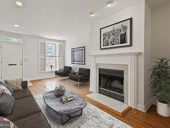 Live on one of the best blocks in Baltimore. 1446 Battery is a true gem in the neighborhood with 3 bedrooms, 2.5 baths, a partially finished basement, nice-sized rear parking pad, and tons of natural light! A light shaft thru the center of the home from the third floor all the way down to the basement & open stair treads bring light & a feeling of openness rarely found in an interior row home. You'll love the open floor plan of the first floor, which features original hardwoods and a marble, wood-burning fireplace in the large living room, an updated kitchen, a half bath, and rear addition with its full-width skylights and wall of windows that flood the home with even more light. The second floor has two large bedrooms, one with a large walk-in cedar closet, with a full bath, and laundry space between. The third floor opens to a bonus room (perfect for a home office) along with a large Primary bedroom with dual closets and a private full bathroom. The rear third-floor balcony leads to a rooftop deck with panoramic views of all of Baltimore's favorite sights including the Domino's Sugar sign and M&T Bank Stadium. As a bonus, the home has a large finished room in the basement perfect for a family room! The entire home has been professionally cleaned and painted. The lowel-level carpeting as well as the kitchen tile and tile landing in the main living space have also been professionally steam cleaned (after photos - there are no longer any stains on the lower level). Open House canceled for 8/15